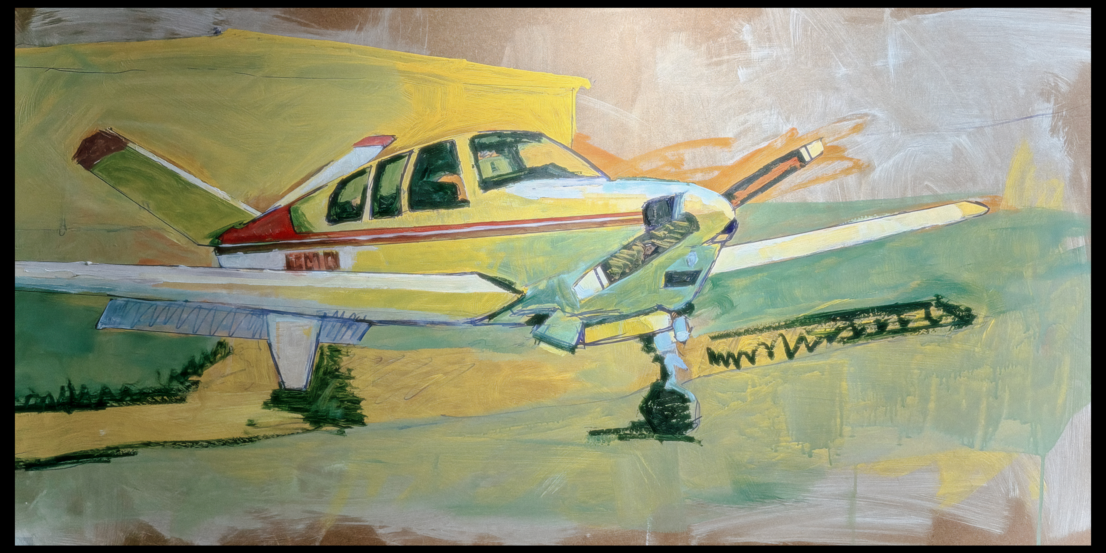 Years later, he owns and maintains his own aircraft. a 1963 V-tail Bonanza. this painting is my way of capturing that moment… not just the airplane, but the weight of everything behind it for sure